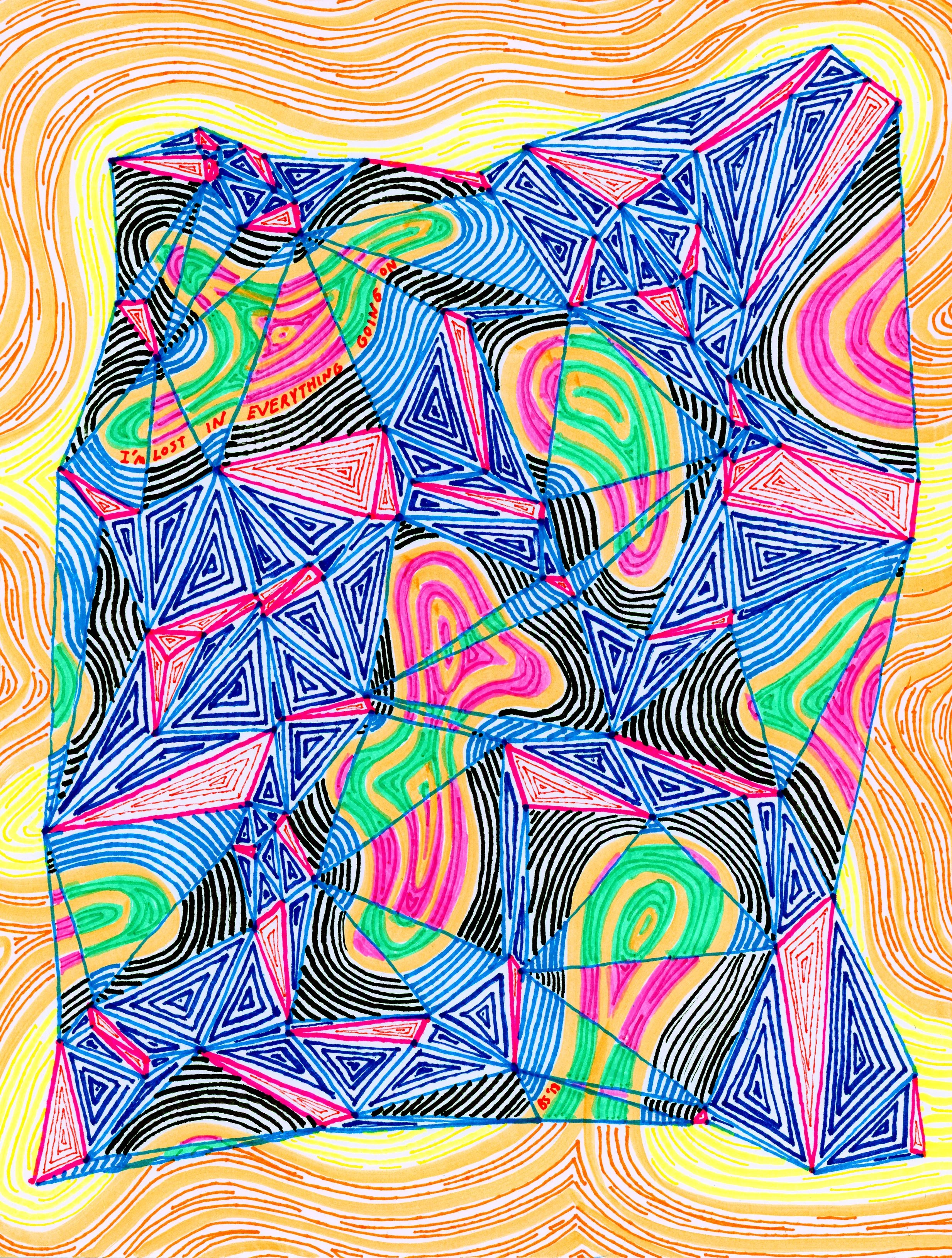 Untitled // Lost In It All - 2018 - Pen and Highlighter on Cardstock
